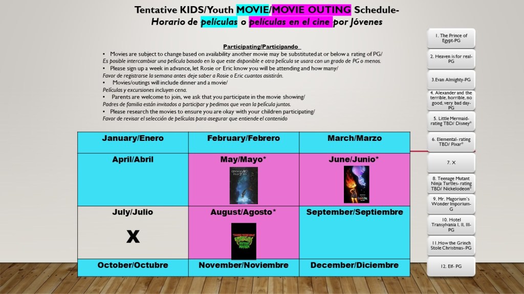 - Men’s Monthly Fellowship Dinner @ the church. Potluck or Brown Bag. To be announced in the weekly bulletin located in the foyer.